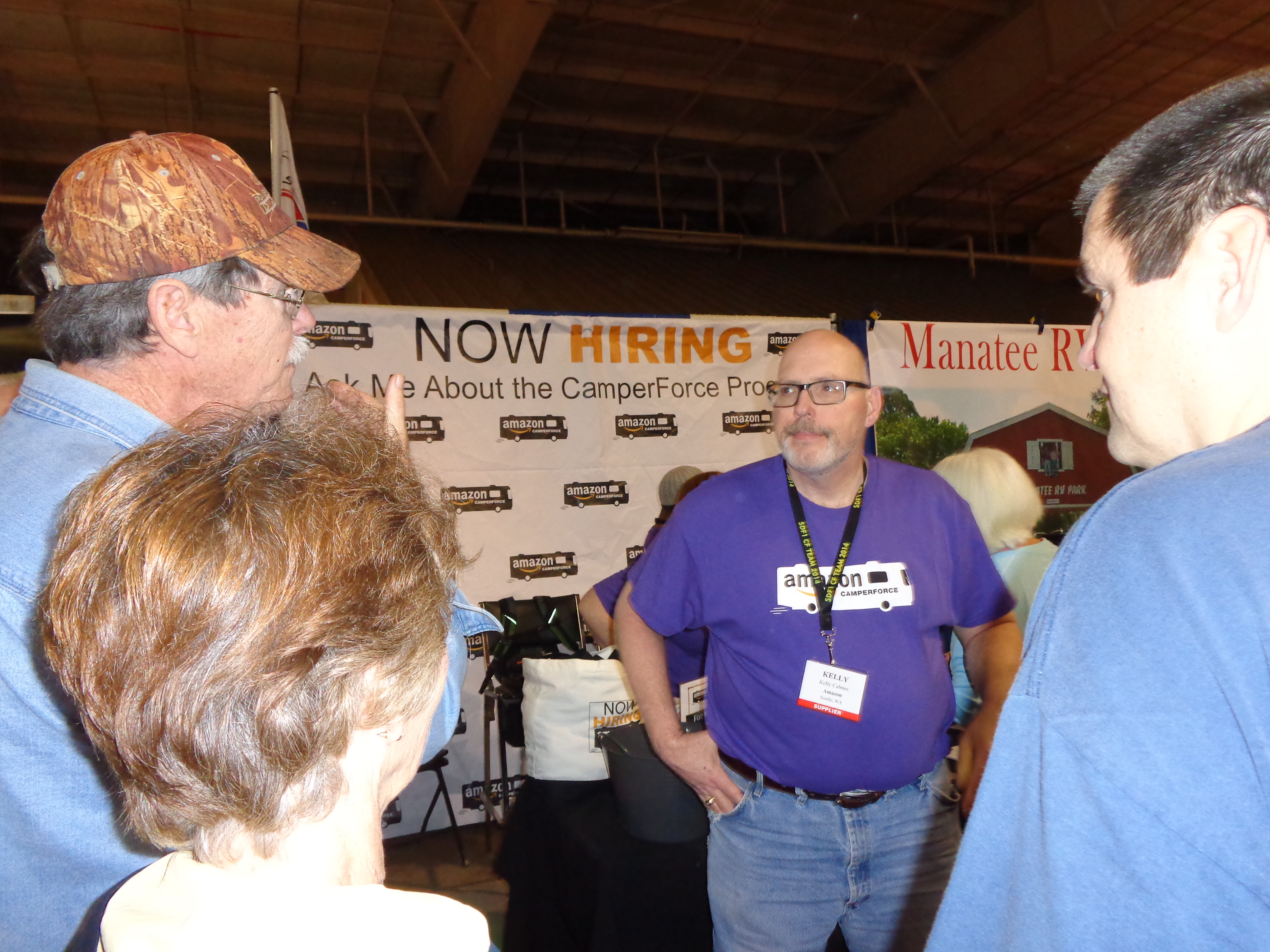 We also ran into a number of co-workers from Amazon, and had a nice lunch with everyone. Then all of us went over to one of the exhibitor buildings, to say ‘hi’ to the human resource personnel for Amazon that handle the Camperforce program. Kelly, in the purple shirt below, was our HR rep that came with us up to Jeffersonville, IN last December.