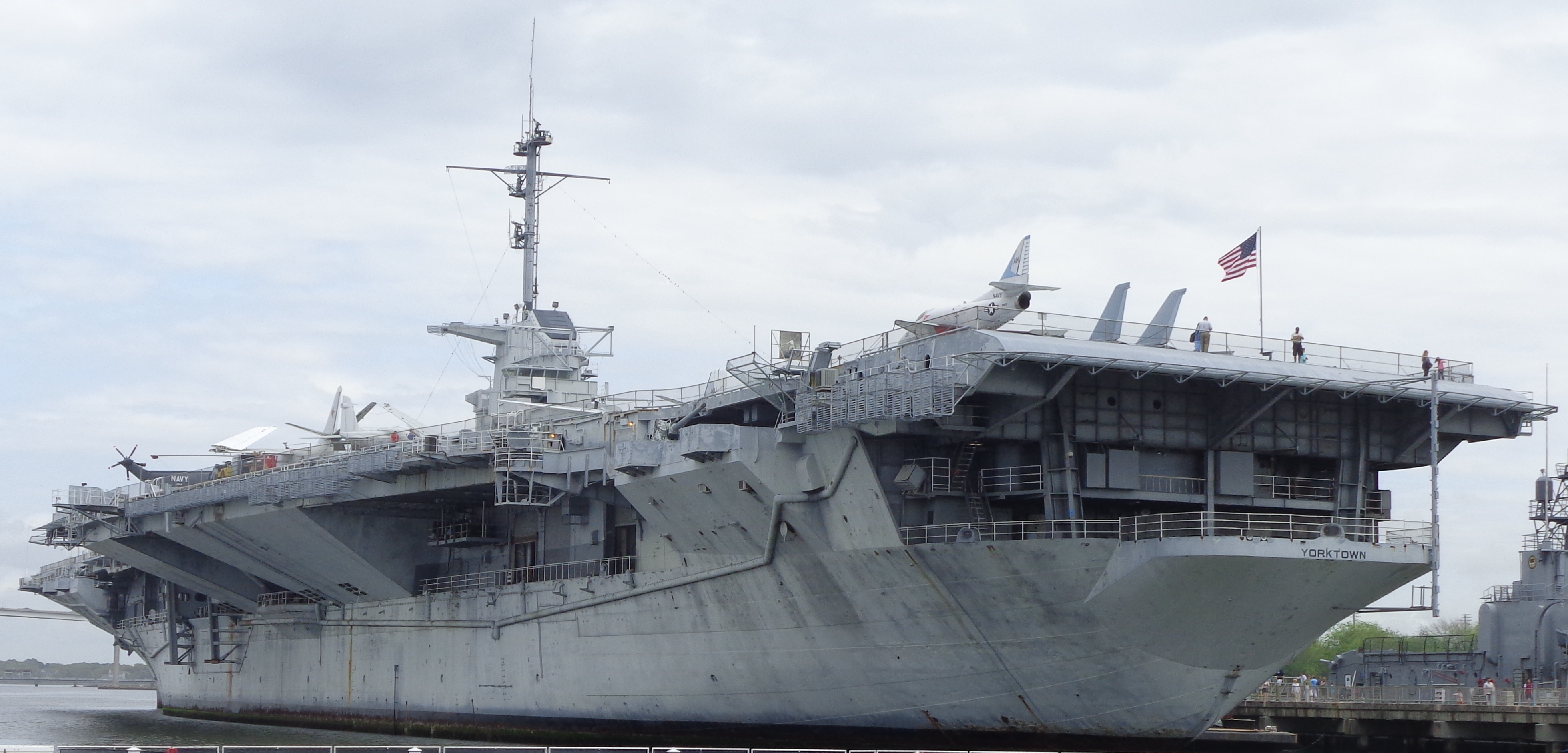 The USS Yorktown Aircraft Carrier was commissioned on April 15, 1943 and fought in many historic battles in World War II. She was converted to an antisubmarine carrier in the 1950’s and served in that capacity in the Vietnam War. In addition, the carrier recovered the Apollo 8 astronauts and their capsule after they returned to Earth. The carrier is very impressive in size at 888 feet in length.