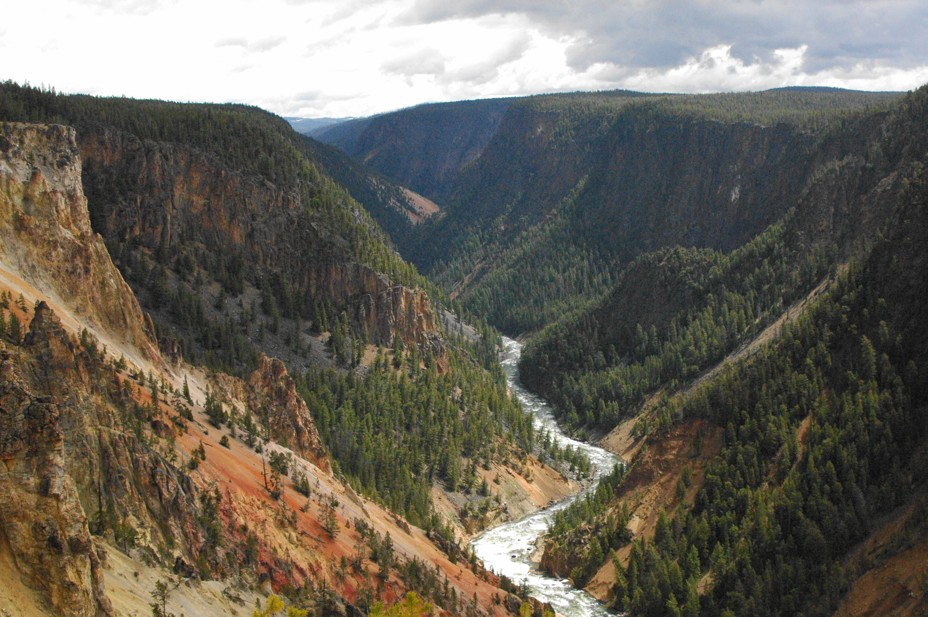 The Riverside Geyser erupts every 6 hours, and lasts about 20 minutes. It is on the bank of the Firehole River, providing a very scenic display.