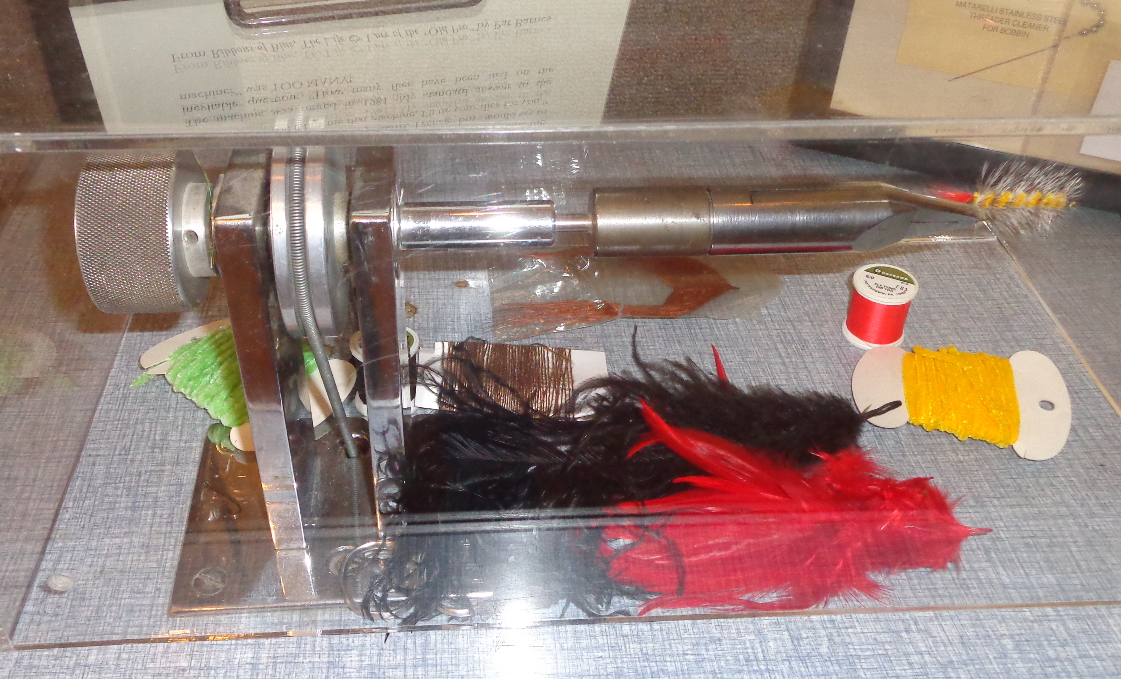 There are displays on fly fishing, including this unusual Singer sewing machine, which was turned into a machine to tie flies.