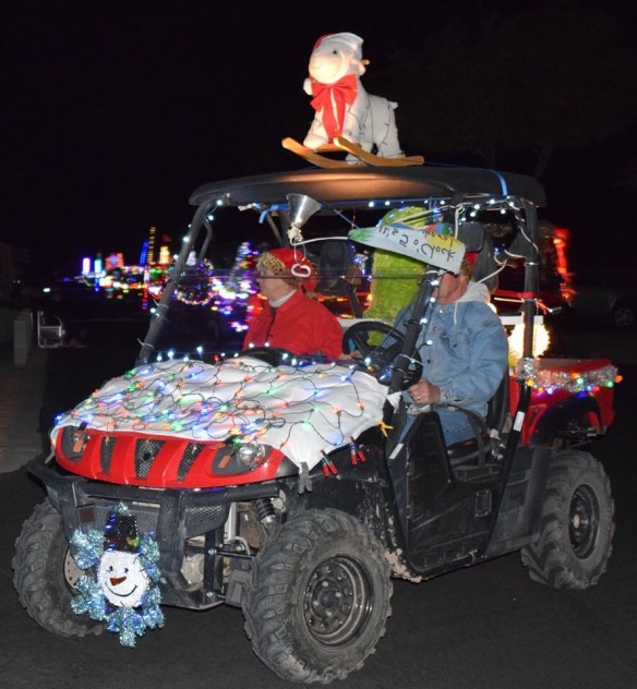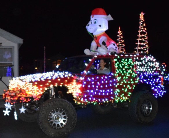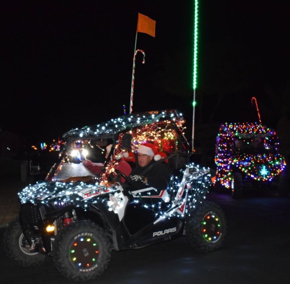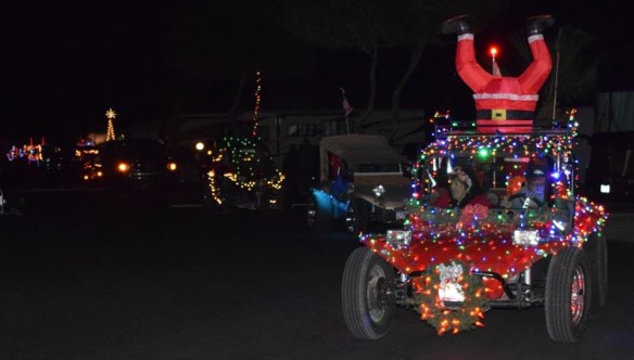 Last Saturday was the Foothills Off-Road Vehicle Club’s annual Electric Light Parade. Members decorate their jeeps and other off-road vehicles and go from RV park to RV park at night to show off their vehicles, and to collect donations for the Yuma food pantry. This year there were a few hot rods added to the parade, which were a big hit with the crowd. Enjoy!