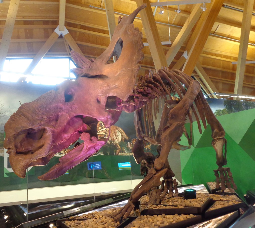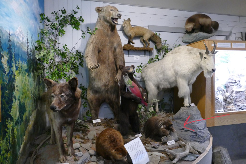 Below is the menacing looking Jefferson Ground Sloth. While it may look ready to attack it’s prey, this mammal is a herbivore, not a carnivore, and the claws are for tree-climbing. According to the display, they are named in honor of US President Thomas Jefferson, who is considered to be the first paleontologist in North America. They roamed Yukon 75,000 years ago during an interglacial period. (which is what we are in now)
