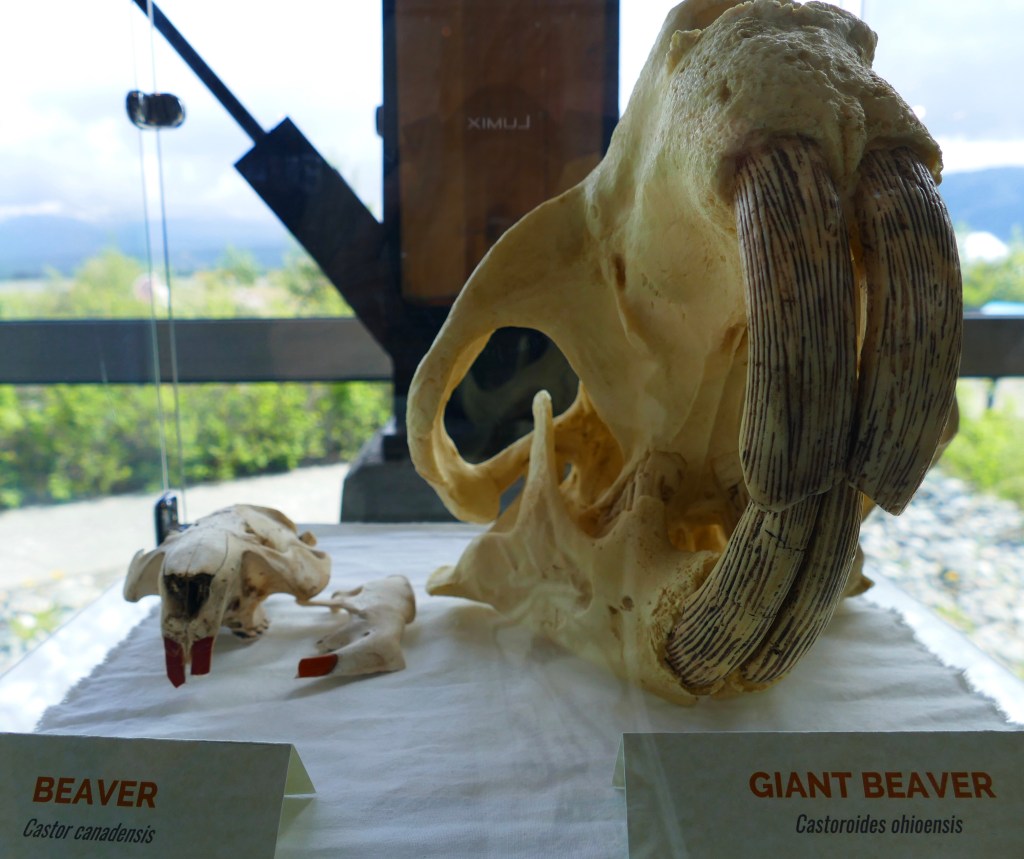 Below is a skull of the modern day beaver in comparison to a cast skull of the Giant Beaver!
