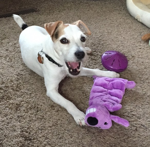 She loved to play with toys, right from the day she found her forever home. Even if the toys were bigger than she was!