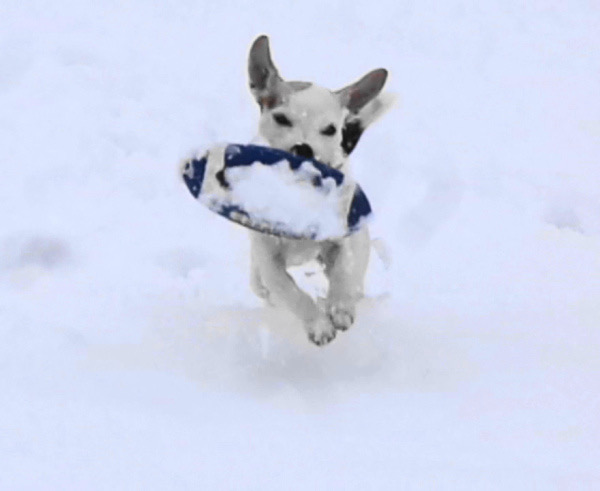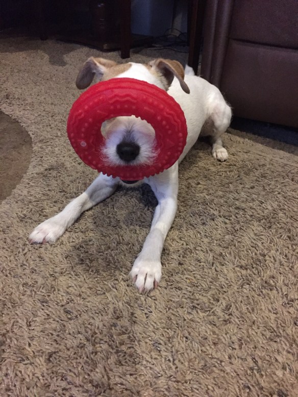 In addition to the football, she also enjoyed playing with her rubber frisbee.