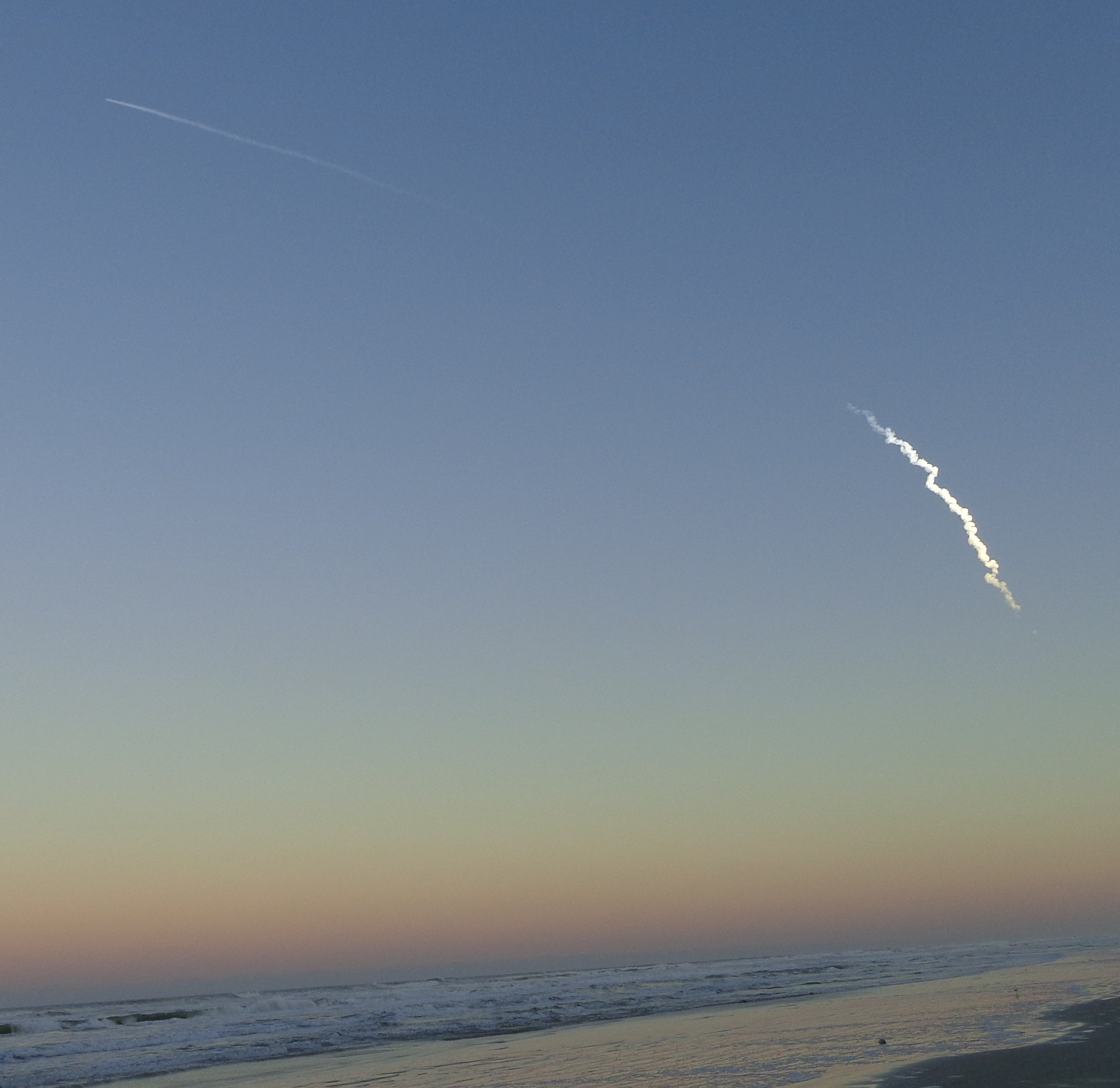 About 10 minutes later, we were able to watch two of the rocket boosters return accompanied by their loud sonic booms. They looked like 2 shiny UFO’s!