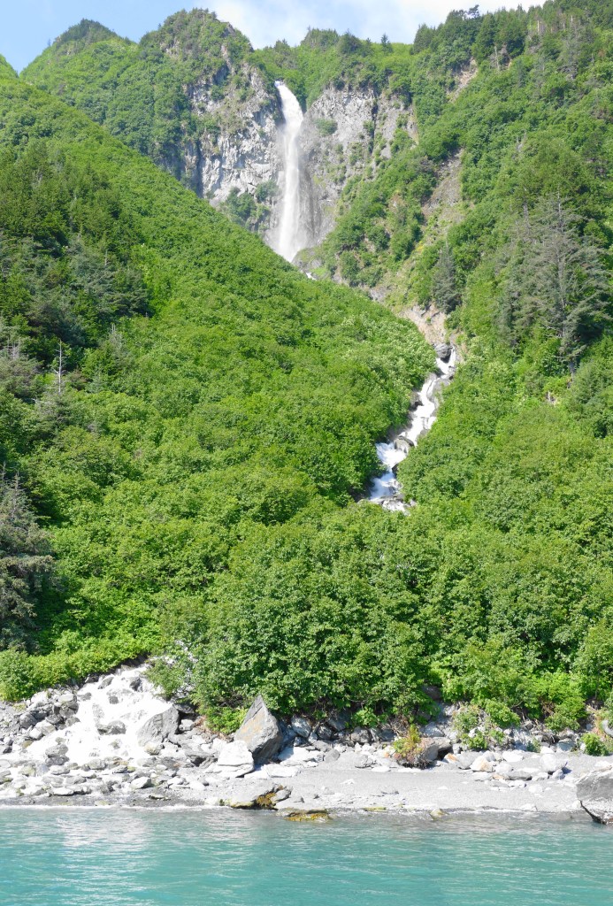 Later in the morning, the fog was lifting and the sun popped out for the day! We continued along the coast of Prince William Sound and came across a beautiful waterfall, Anderson Falls.