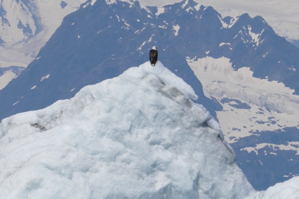 We came across another big iceberg, and there was an Eagle sitting on it, in the upper left side.