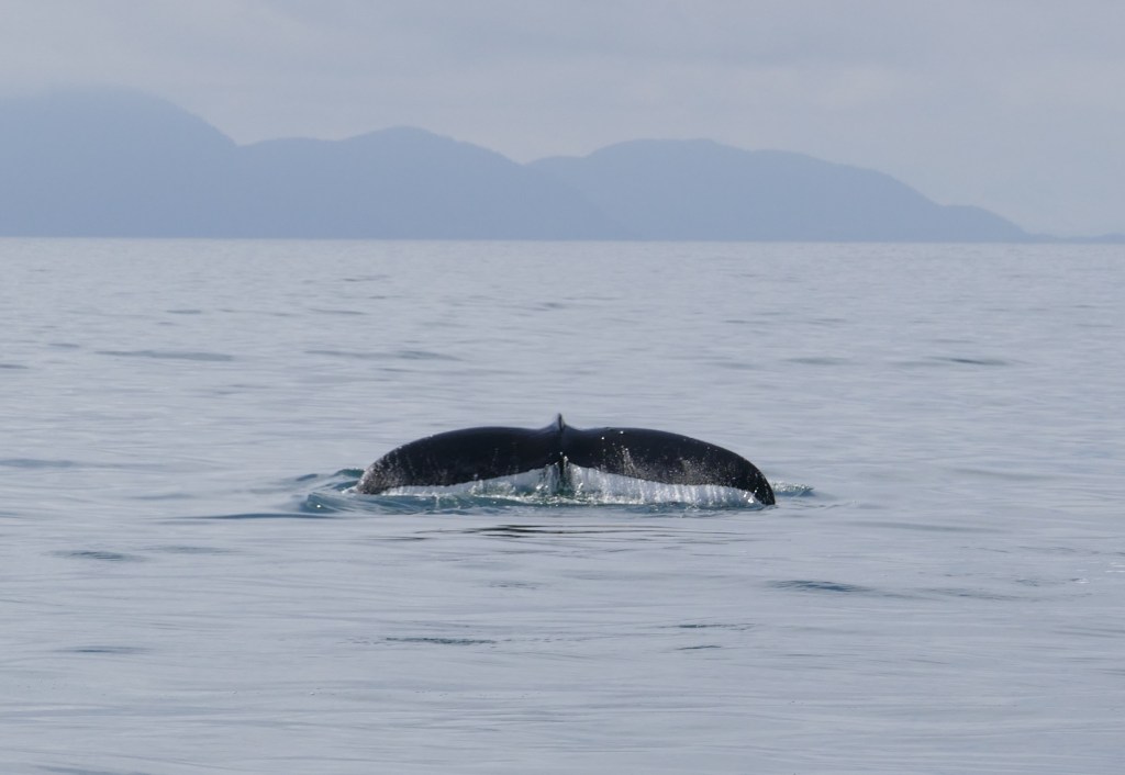 You never know what you are going to see on a cruise, and we were hopeful for a whale sighting. There was a lot of shouting going on by some of the passengers, when they noticed this “water spout!” We continued to watch and finally the humpback whale surfaced and then went back down. They can stay underwater a long time before surfacing. The captain timed this one, and it would stay under the water 6 minutes before surfacing.