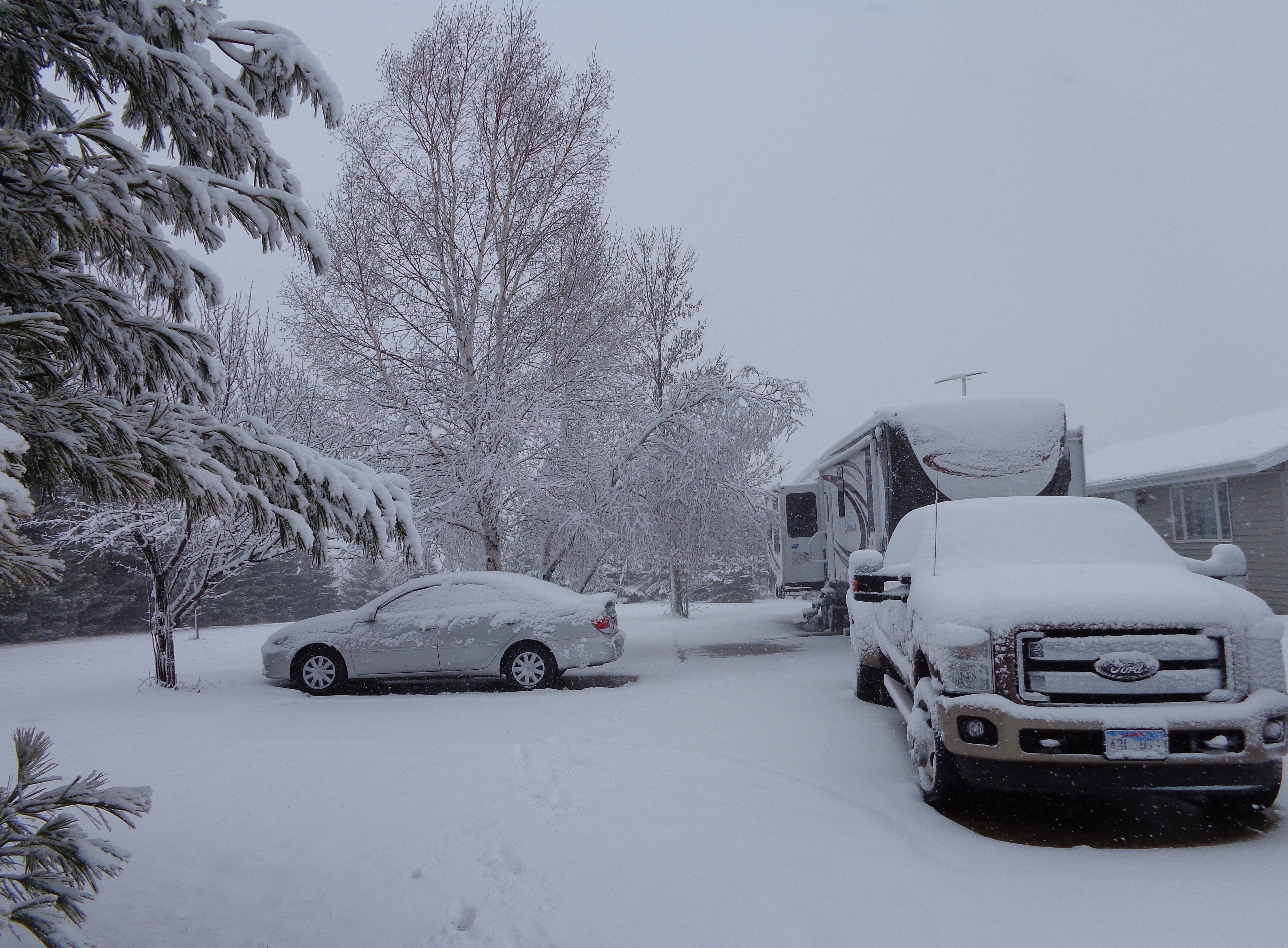 Our trip back to Wisconsin was uneventful. We can drive much longer distances with our camper than the fifth wheel. And I drove about 200 miles the first day – Dan said it was the worst gas mileage we have had since getting the camper! (I am a bit of a ‘lead foot). It was a 1200 mile trip with virtually no contact with anyone, as we stayed over at Cabella’s (they are very RV friendly) and packed food for meals. Only had to stop for diesel and pottie breaks for Makena and us.