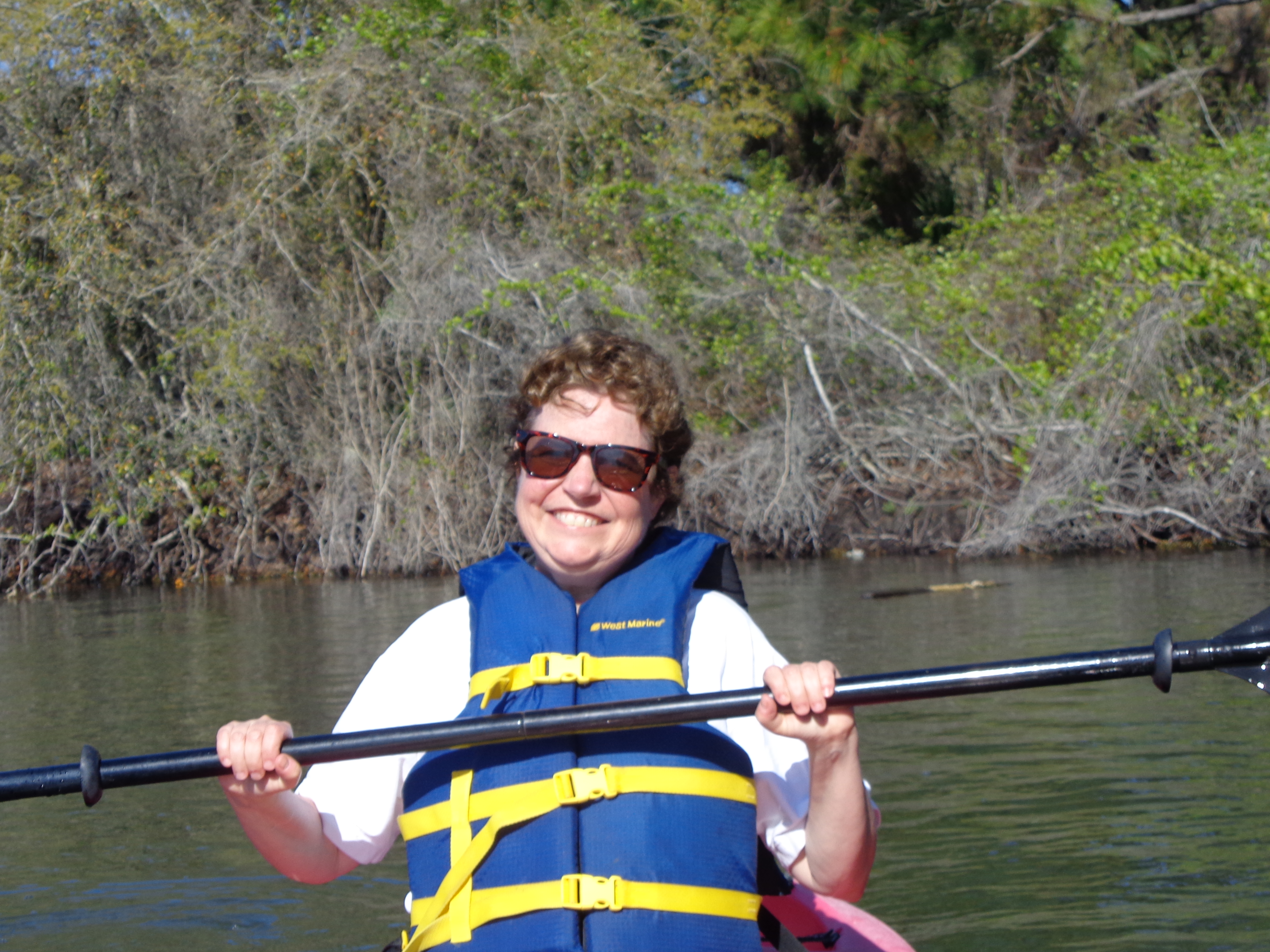 Monday (3/17) we again got together for dinner and cards, and Jasmine flew in late that night. On Wednesday, Gary, Julia and Jasmine joined Dan and I down in Cocoa Beach, on a 2 hour Kayaking Tour on the Indian River, with Island Time Kayaking. We had seen this tour offered on Groupon, and the price ($25.00 for 2 people) was right. Neither of us had ever kayaked before, and we both wanted to try it out.