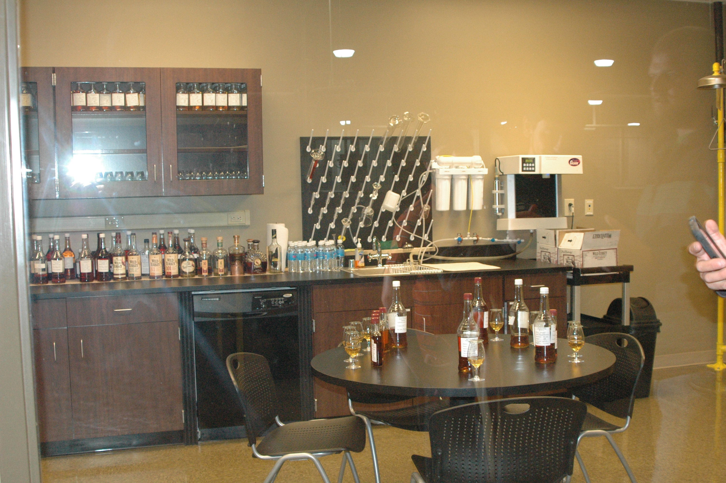 The tour starts out by going over a small-scale example of a distillery, and then goes into the main plant to see their operations. During the tour, visitors have an opportunity to fill a barrel, dump a barrel, and rinse out bottles.