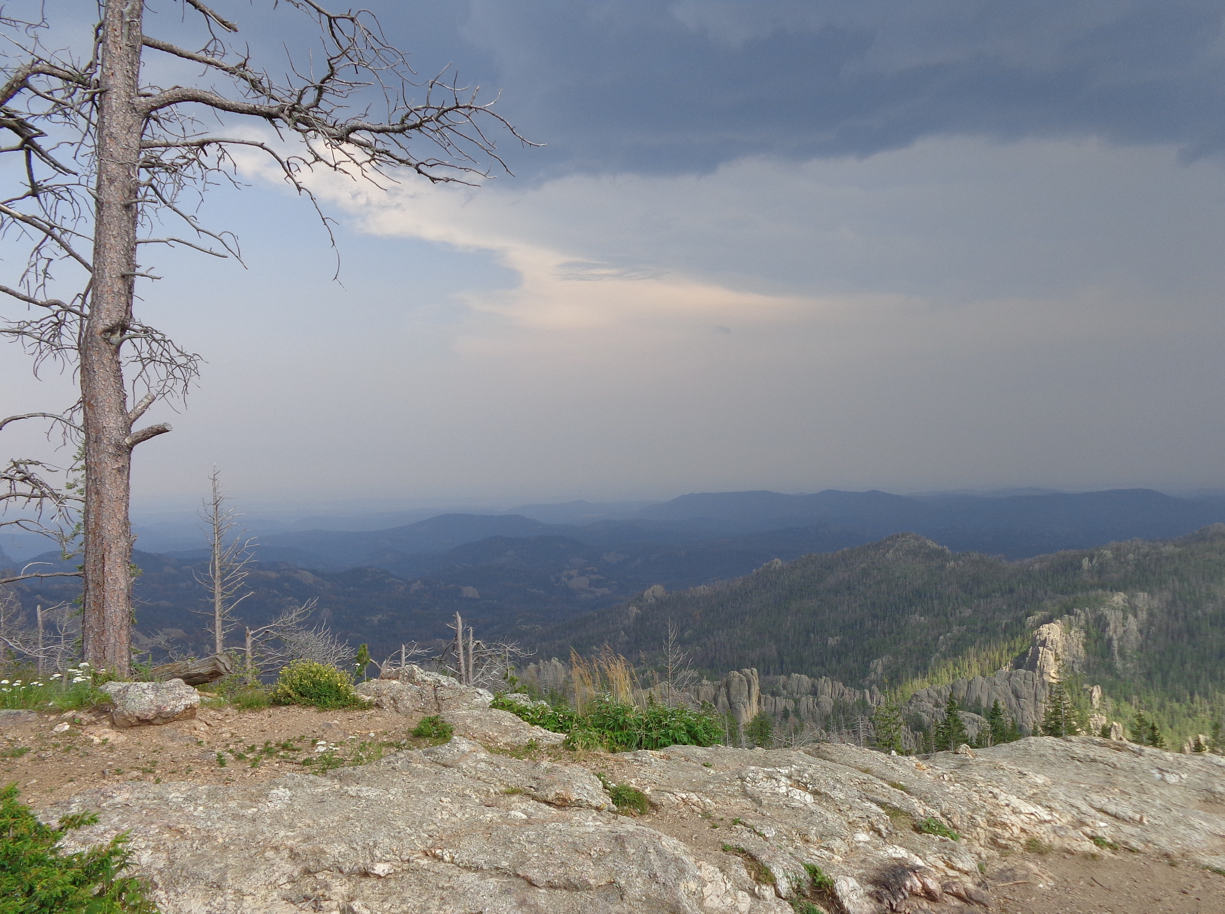 The views, even with the storms in the distance, were getting even more spectacular, as we continued getting above the tree line of the Black Hills Forest.