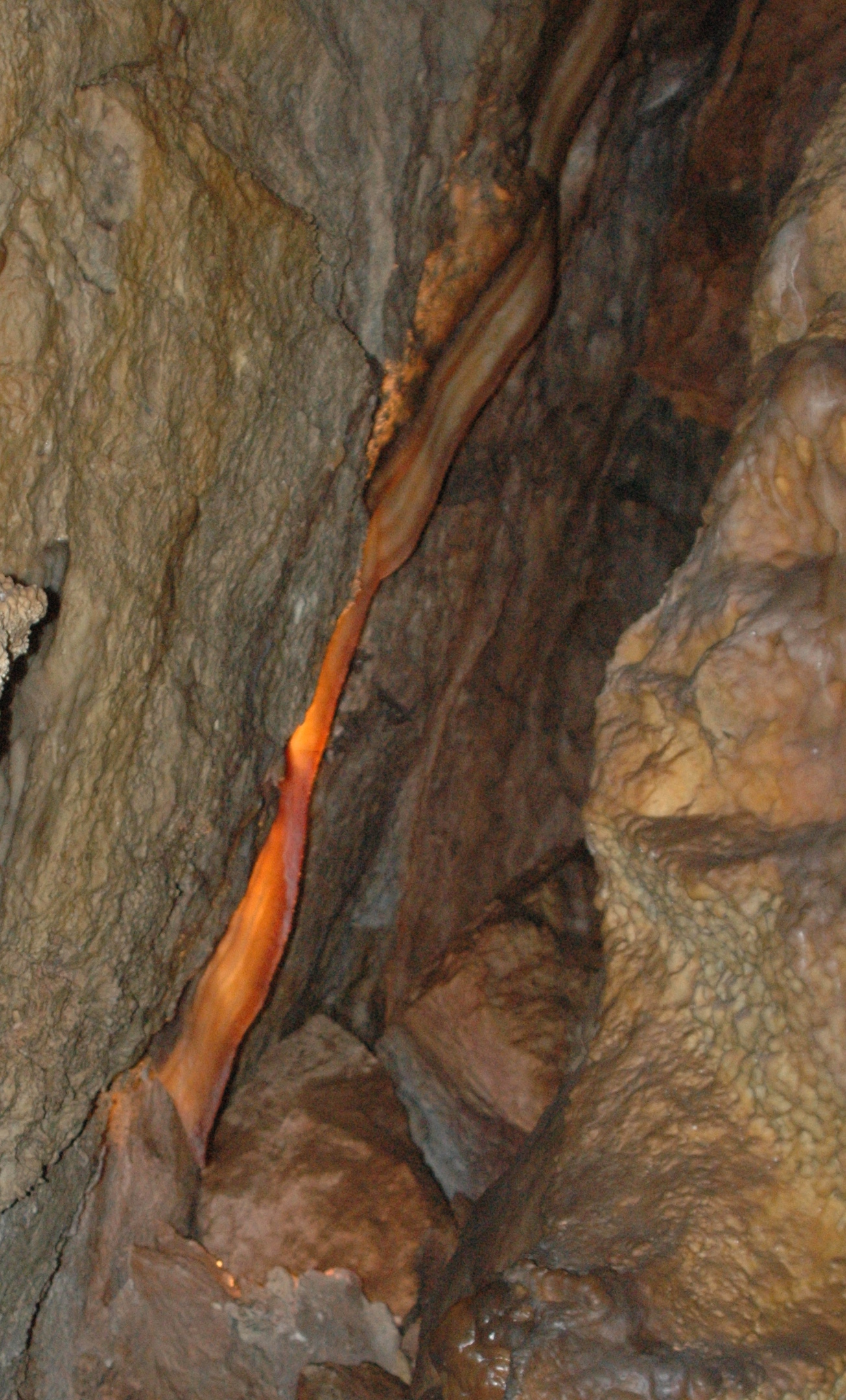 We have never seen this type of formation before. Helictites are found in limestone caves and are believed to have a capillary system. The formation starts out as a stalactite, but over time the growth may twist and turn, defying gravity. The one we saw was growing out and up. Our tour guide stated the dark spot was “the spine”.