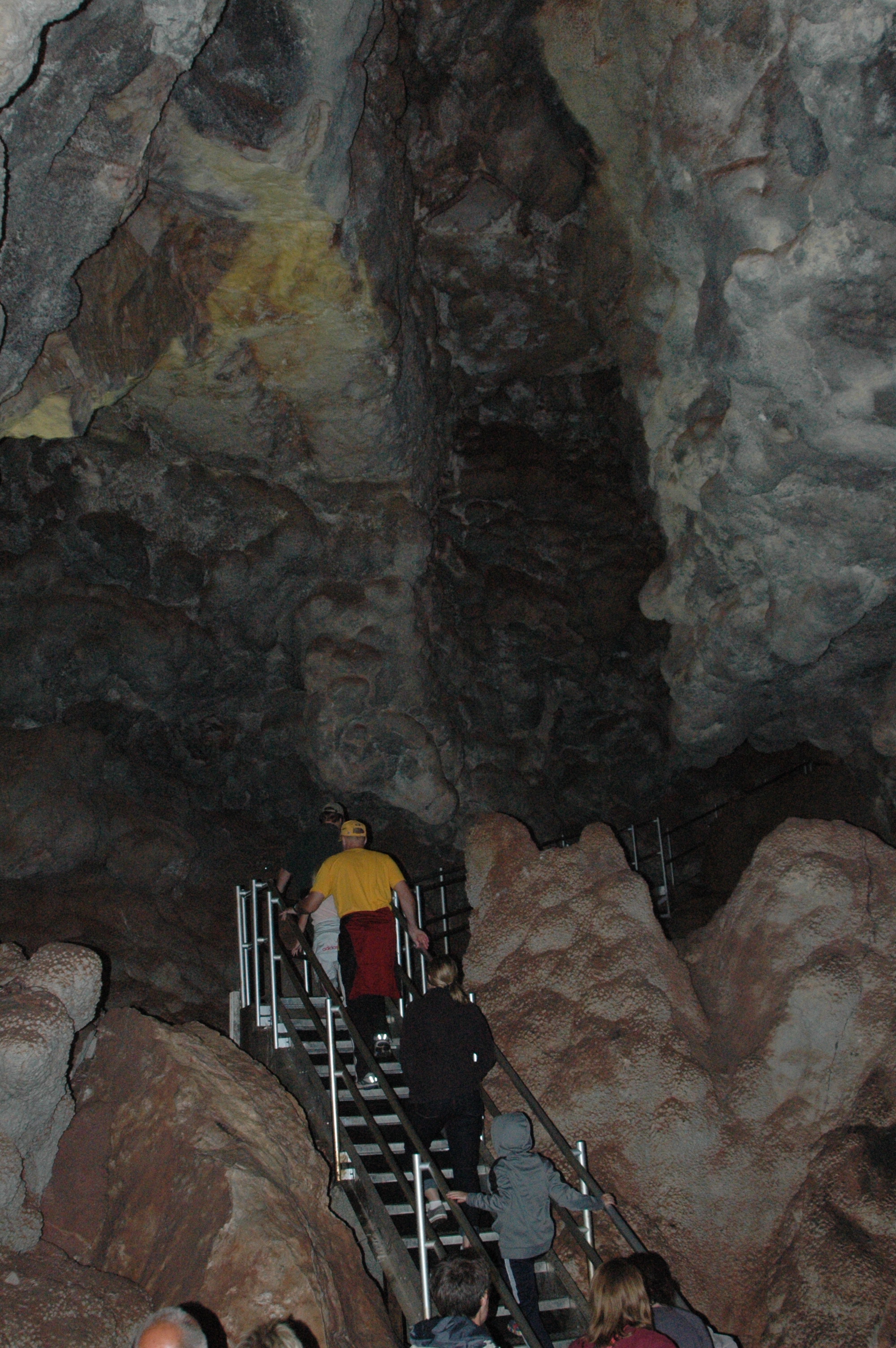 The cave also has examples of Boxwork, dog tooth spar crystals, flowstone, and many stalagmites and stalactites, along with the columns that occur when they reach each other. We also saw an example of frost work, which can be seen in some of the other park service caves, but not on the basic tours. They do not have a light on it, to keep it preserved, but our tour guide did point it out with a flashlight. We did this tour at the end of August, as we were more “ho-hum” after seeing the other privately owned caves. This cave is certainly worth a visit (cost $14.50, and yes Madge, it was free with VIP pass). Our tour was about 90 minutes, but we are not sure if this is a typical length of time. There was a newspaper reporter with us, and the manager was giving the tour, so we felt we lucked into getting a more detailed tour. And it was just the four of us, which made for an even better experience.